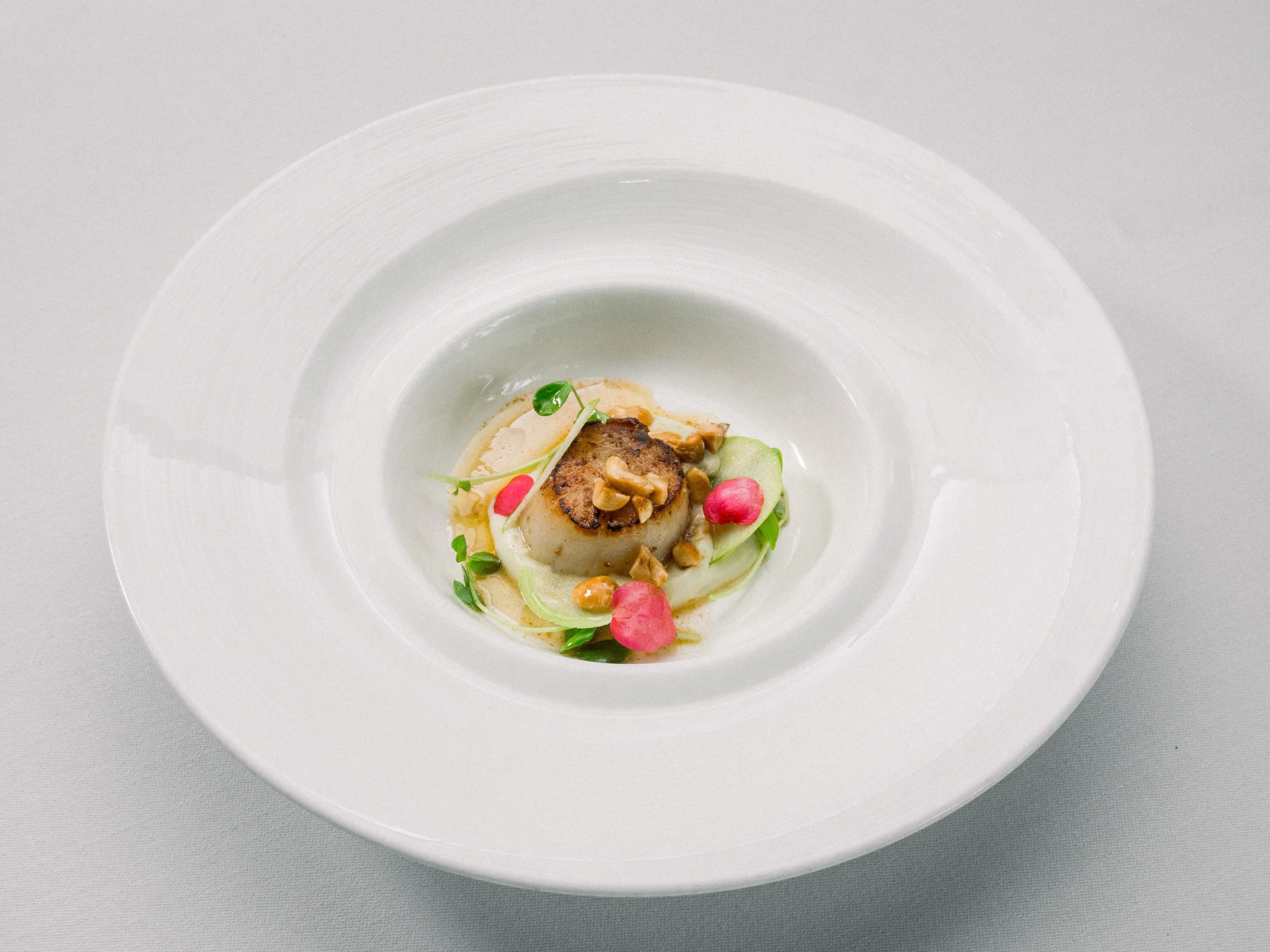 • Smoked and salted pollock with tapioca in a vegetable broth by Alexandre Mazzia