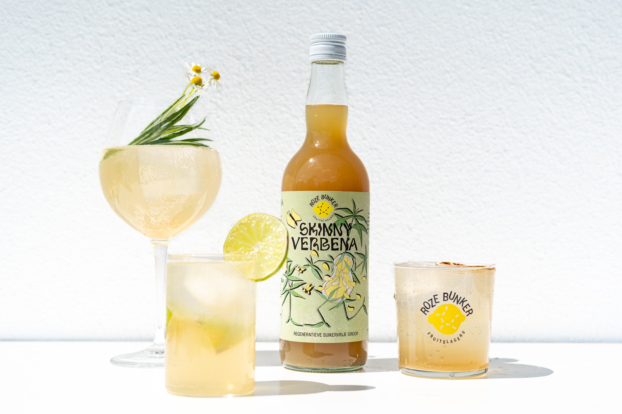 The fruit slingers at Roze Bunker tackle the sticky problems of the food industry with kilos of pure fruit and fresh herbs. A syrup is only made if it actually contributes to a better food system. Why transport water when it comes straight out of the tap? By adding water at the last minute, this saves a lot of transport volume compared to an average soft drink brand. One bottle of Roze Bunker is equivalent to one crate of soft drinks! That saves on storage, a lot of lugging around, and mountains of plastic. This way, you can make your own biodiverse, local soft drink, cocktail, or mocktail from the short chain at home.