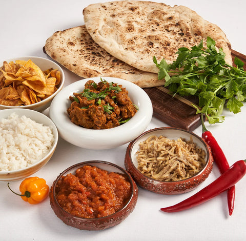 Unlike what you are used to, you will start with the ingredients and, together with Soenil, prepare his favorite dishes. So you won't just be adding the finishing touch, as is the case with most menus at SOUS. In the Cheflix Masterclasses, Soenil Bahadoer guides you step by step, ensuring a culinary spectacle! Let's get started! First, you'll make two of his favorite chutneys: potato chutney and tomato chutney. Two simple recipes, but still incredibly tasty. Serve them with, for example, flatbread, and in no time you'll have a fantastic snack or side dish. For the main course, you'll make the heartwarming lamb stew. A true Bahadoer family recipe. With your purchase, you receive 1 month of Cheflix for free, with no obligations. And for the first 200 lucky people, you will also receive a SOUS cutting board and Zeeuwsche Zoute. Please note: the flatbread is not included as standard but is available at AH.