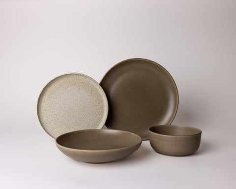 This set consists of 2 bowls, 2 pasta plates and 2 dinner plates On The Rocks and 2 breakfast plates Broken Shells. Expand your dinnerware set further with other items from the color series or mix & match with other colors.