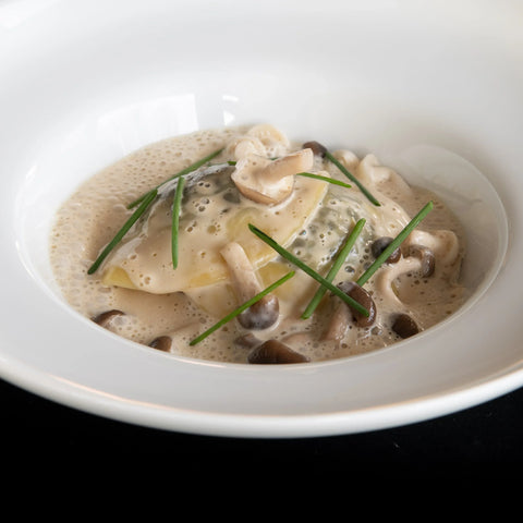 This flavorful Lentil Ravioli offers a fresh twist on an Italian classic. Served with delicate shimeji mushrooms and a rich mushroom cream sauce. This dish brings together the earthy flavors of lentils and mushrooms in a delightful harmony, perfectly finished with the creamy sauce for a sensational taste experience.