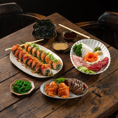 Do you feel like sushi and sashimi as you haven't tasted it yet? This sushi & sashimi dish offers a delicious mix of fresh sushirol, fresh sashimi, tasteful tataki and matching sauces. Complete with seaweed snacks, wasabi and sticks - everything in one handy packaging for the ultimate fish experience!