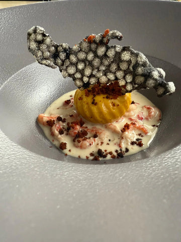Paellaflan – rivierkreeft – beurre blanc – chorizo