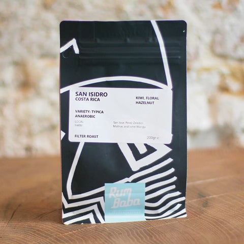 Toen Johel Monge 40 jaar geleden het hoog gelegen stuk land kocht werd aangenomen dat het niet geschikt zou zijn voor het kweken van koffie planten. In plaats daarvan gebruikte hij het voor het verbouwen van hout, en jaar na jaar verbeterde hij en zijn familie de grond en de infrastructuur. Door klimaatsverandering werd het gebied geschikter voor het verbouwen van koffie. Daar zijn Johel, en zoon Mathias zo'n 5 jaar geleden mee gestart. Hiervoor hebben ze ook een andere koffie boerderij gehad, maar hebben deze verkocht om zich volledig op het San Isidro project te storten. De handgeplukte en geselecteerde koffie wordt in luchtdichte tanks gefermenteerd voor 24 a 48 uur. Daarna wordt deze over 20 dagen gedroogd op patio's voordat deze wordt verwerkt voor verzending. De koffie is gebrand zo dat de frisse kiwi tonen de hazelnoot afdronk niet overheersen. Hiermee ontstaat een unieke koffie die zowel comfortabel als verrassend proeft.