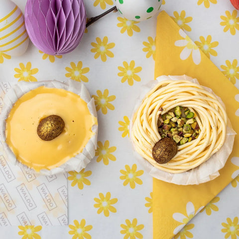 2 bijzonder mini-taartjes van WALDO met Paas-topping.