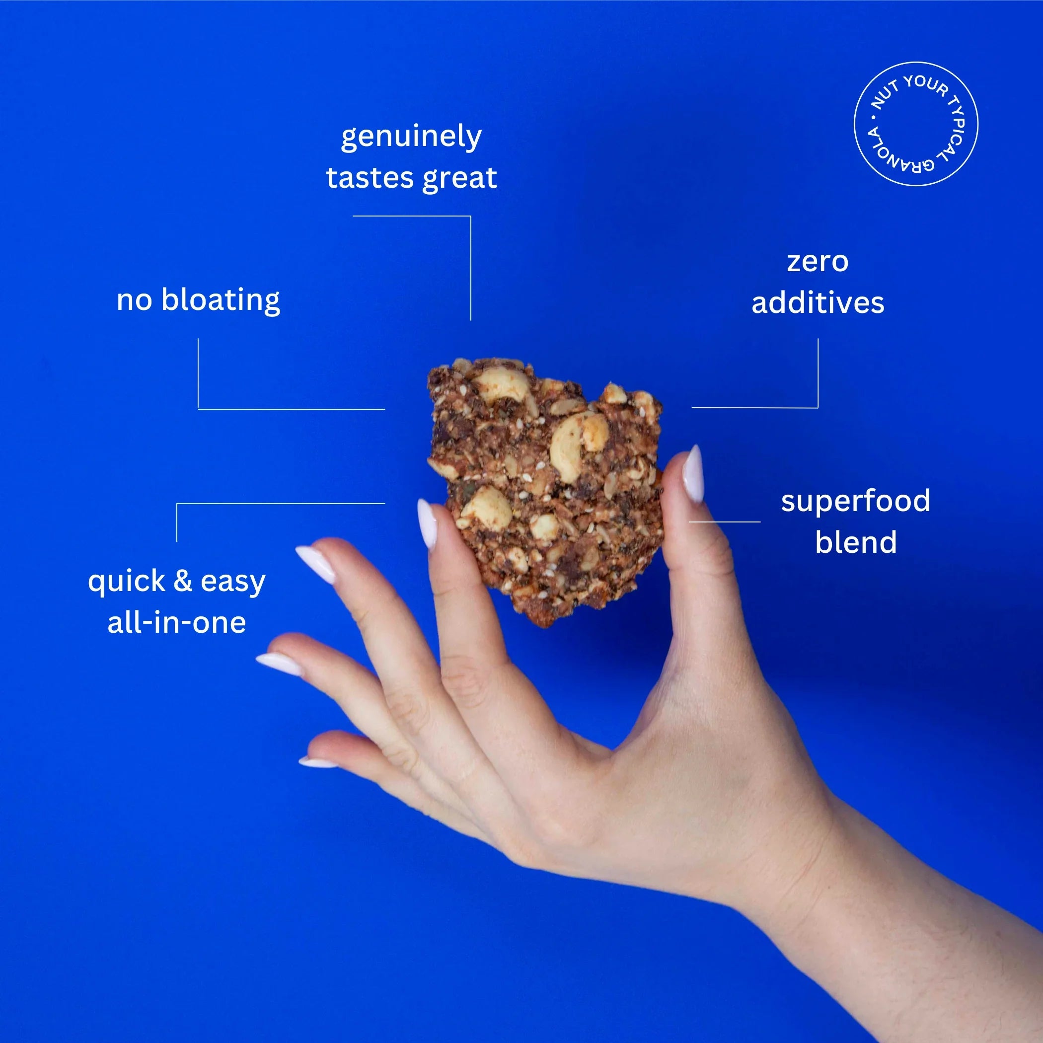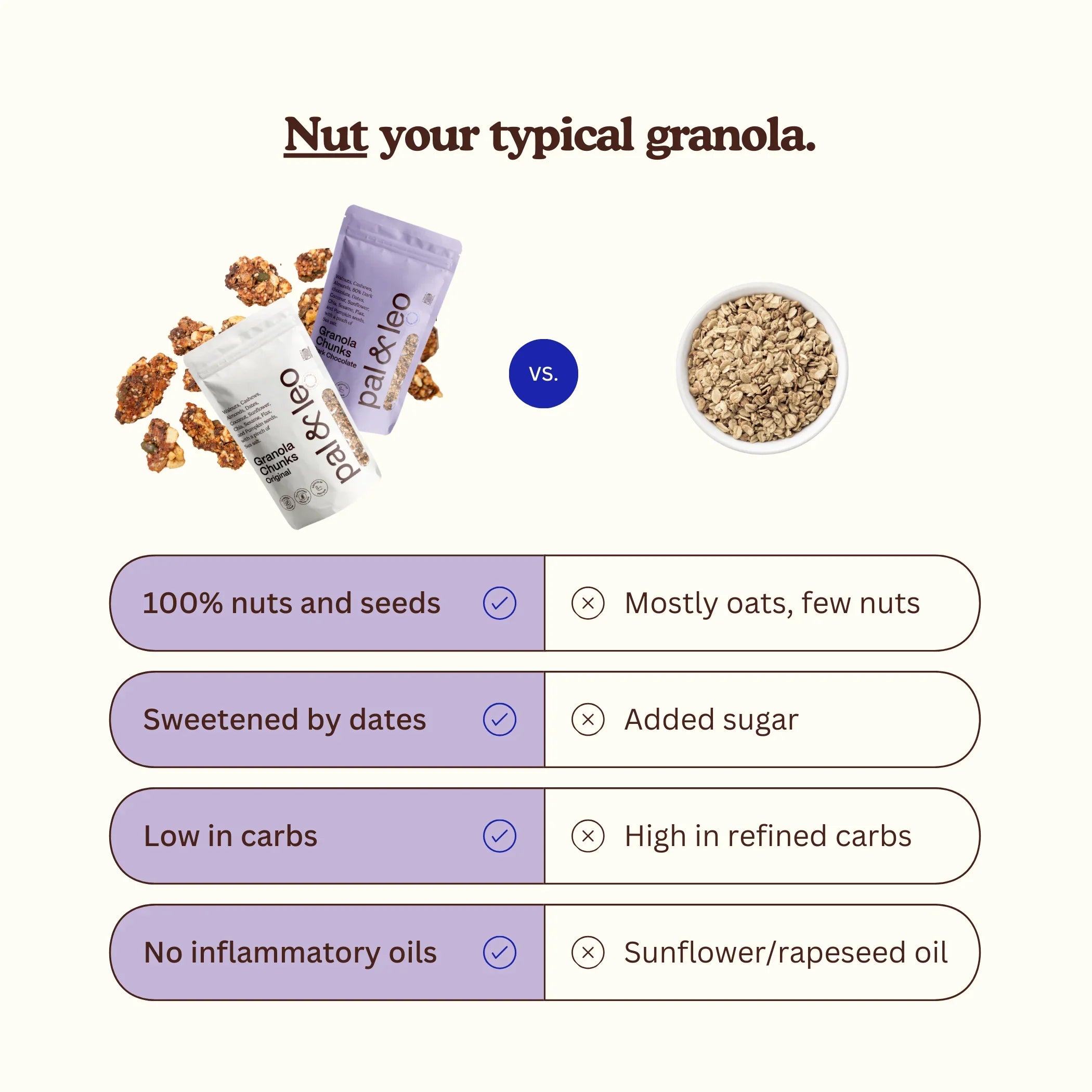 Enjoy our Dark Chocolate flavoured Granola Chunks, the perfect grain-free snack. Made without grains, this product is a delicious and convenient option for those who love eating healthy and very very tasty.