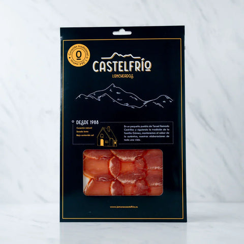 Top Teruel ham uit Cedrilles, Aragon waar de familie Gomez sinds 1987 hammen droogt volgens het ouderwetse ambacht. Elk jaar zijn er ook keuringen van de beste Teruel Hammen waarbij er wordt gekeken naar diverse punten bij een ham. In totaal zijn er 100 punten te verdienen, beetje vergelijkbaar als bij wijnen. Castelfrio is het eerste en enige huis tot nu toe wat in 2018 100 uit 100 scoorde. In 2024 werd het bedrijf ook uitgeroepen tot beste ham van Spanje door de Spaanse Ministerie van Agricultuur.