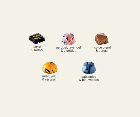 5 heerlijke bonbons om het diner in stijl af te sluiten. Lekker bij een kopje thee of koffie. Heb je toch genoeg gegeten, neem ze dan lekker de volgende ochtend bij een kopje thee of koffie. Nagenieten van het diner van de vorige avond.