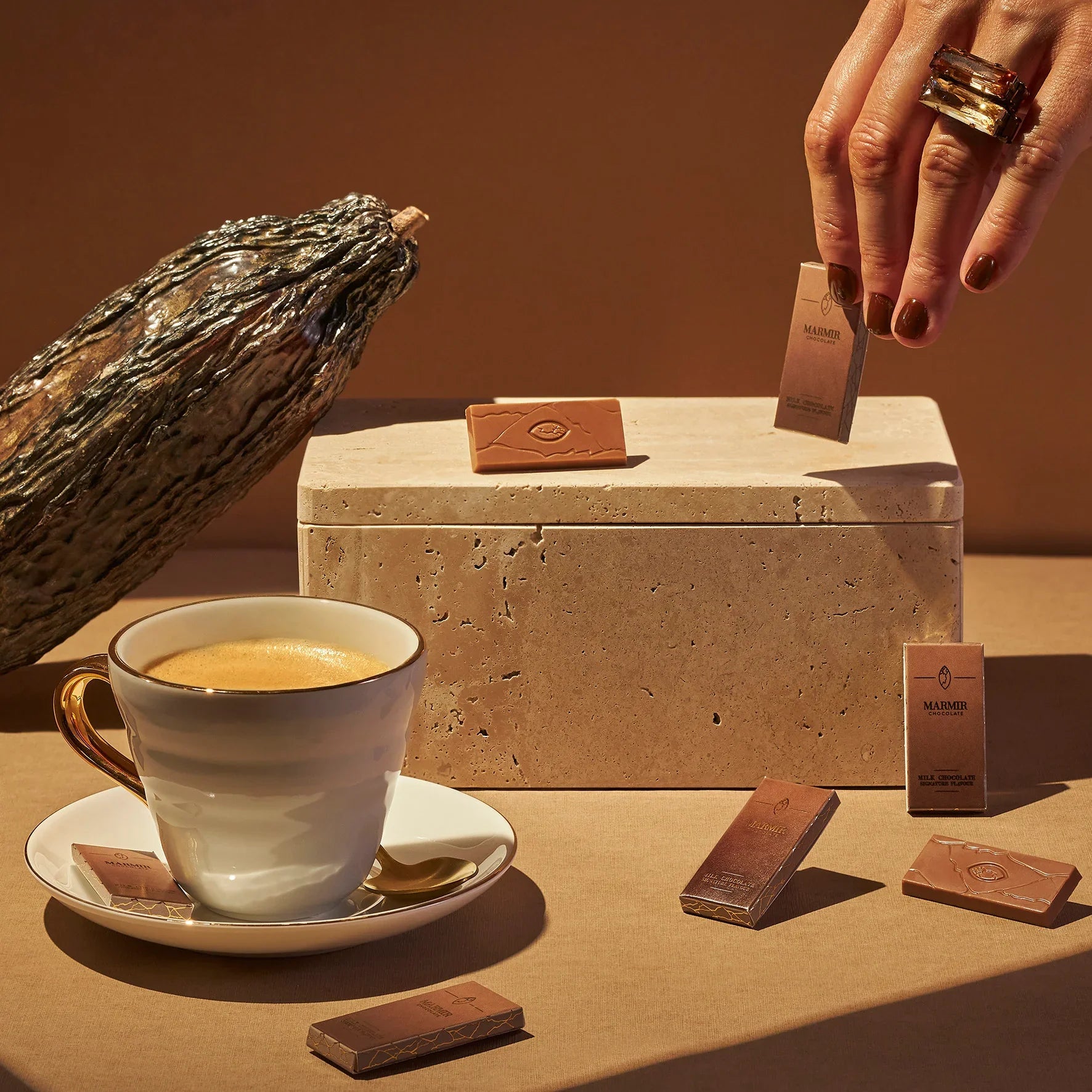 De MARMIR Bite Collection heeft het allemaal: acht smaken verpakt in genietmomenten van snackformaat. Niemand hoeft zich in te houden voor een tweede ronde chocolade, want met een paar klikken is de navulling zo besteld. Van één favoriete smaak tot een mix van elegante smaken. Voor thuis, in de horeca, of op kantoor. Omdat genieten juist in de kleine dingen zit!