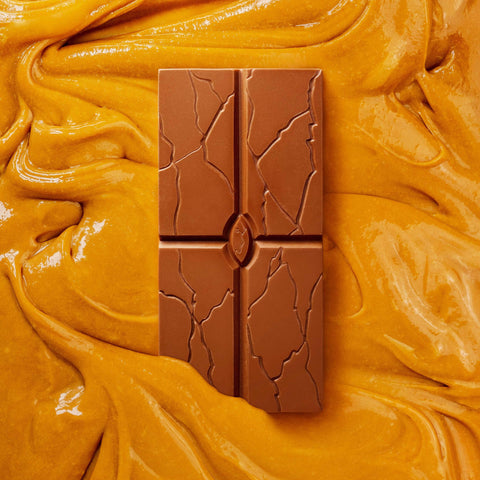 Milk Chocolate with Caramel & Lava Salt Lava-zeezout en karamel, verpakt in een romige laag luxe melkchocolade: deze smaak verkoopt zichzelf. De combinatie van zout en zoet, van suikers en vetten, is onweerstaanbaar (lekker) en zorgt – zoals blijkt uit Amerikaans wetenschappelijk onderzoek – voor de aanmaak van geluksstofjes in de hersenen. Laat het ontspannen maar over aan deze gezouten karamelchocolade. Formaat reep: 50 gram