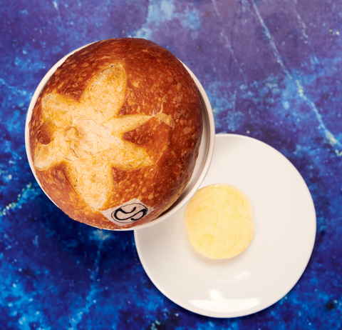 Huisgemaakt zuurdesem broodje met gezouten boter.
