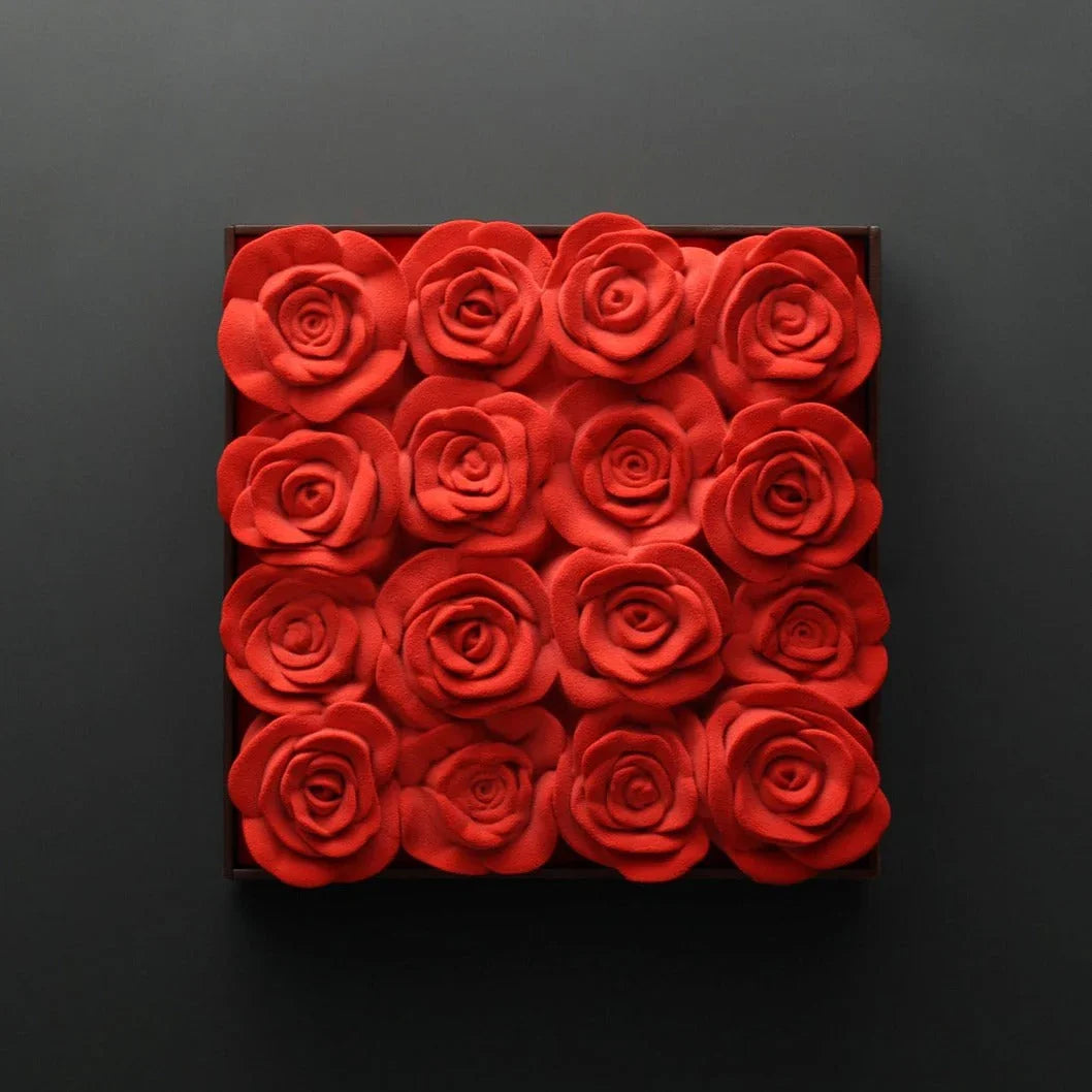 Rozen spreken over liefde in een taal welke alleen door het hart gehoord kan worden. Toon je geliefden je waardering met deze prachtige en overheerlijke rozen, gemaakt van luxueuze crème-brûlée, verrijkt met frambozengelei en frambozenmousse en een overheerlijke lychee mousse. Allemaal op een heerlijke bodem van biscuit.