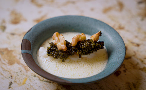 • Hamachi met finger lime, koolrabi en Tomasu-saus